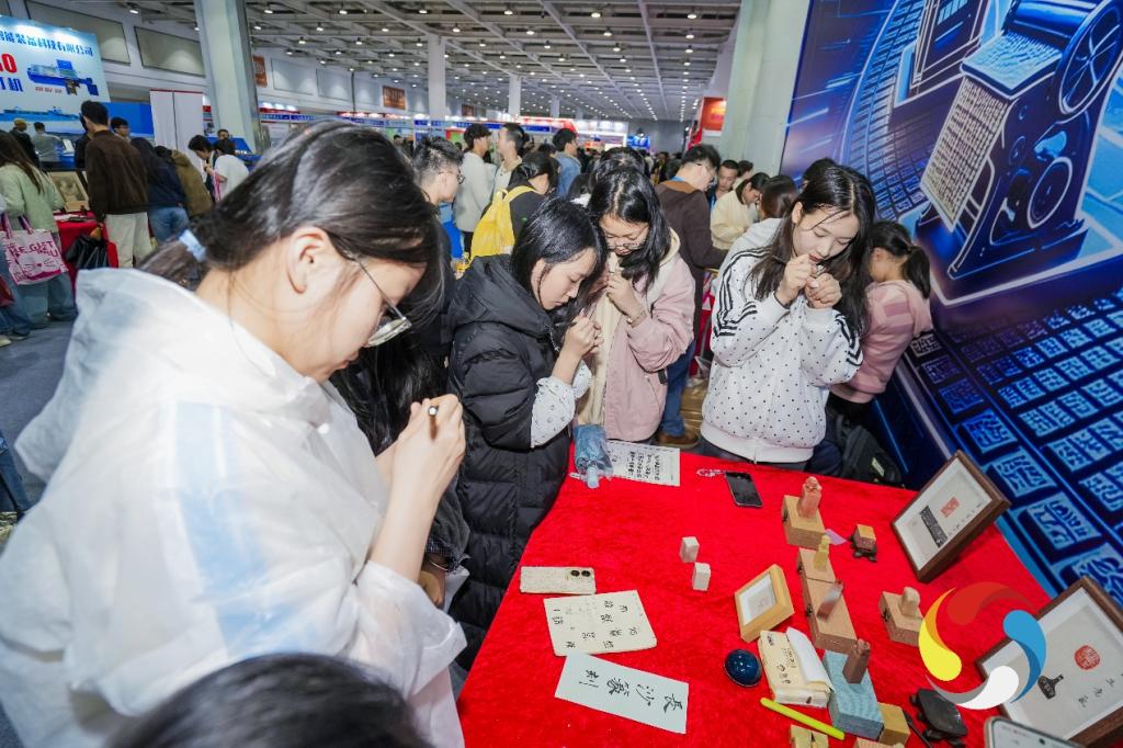 为让同学们更深入感受行业文化与工艺精髓,展会特设的传统印刷工艺体验区成为师生们的重点打卡点。在活字印刷体验区域,同学们亲手操作活字排版、蘸墨、拓印等传统工序,感受千年印刷技艺的独特魅力;篆刻体验区里,大家在专业指导下尝试篆刻印章设计,从字体布局到雕刻技巧,一步步完成专属篆刻作品,将传统工艺与现代包装设计创意相结合,在实践中领略中华优秀传统文化与现代印刷行业的融合之美。
